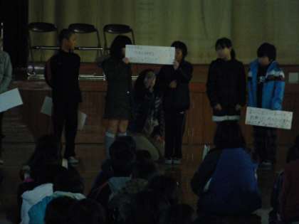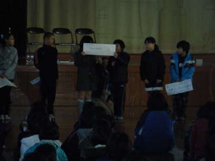 12日(水)の1校時に人権集会が開かれました。各クラスの標語を発表し,交流しました。その他にも,人権に関するアニメや読み聞かせなどを行いました。