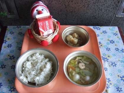 麦ごはん 牛乳 たらのからあげ タイピーエン