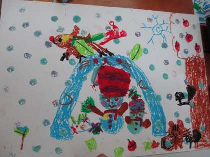 自分の作りたい世界を表現しました。子どもたちの絵を見ていると,