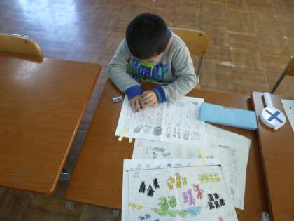 1年生は冬休みの宿題のひらがなをきれいに書き直しています。