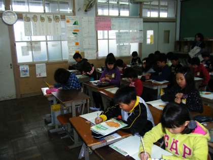 防災の学習では4年生は『阪神淡路大震災』を取り上げました。震災当時の映像を見た子どもたちは,地震の怖さや訓練の大切さを感じたようです。