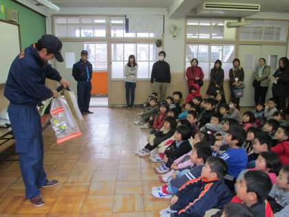 1年生たちは実感したことでしょう。嬉しそうに消防隊員の方に