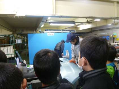 今度は、リサイクルした車を検査しているところを見せていただきました。