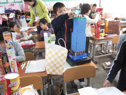 いろいろな大きさやかたちの箱を組み立てた後,よりいっそう本物に近づけるために,