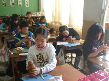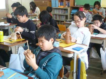 はにわの調べ学習の後、いよいよ、ねんどではにわ作り!!