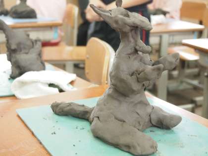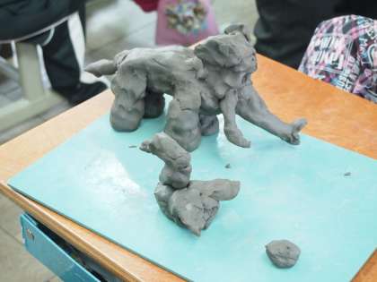 子どもが作った土粘土の作品です。