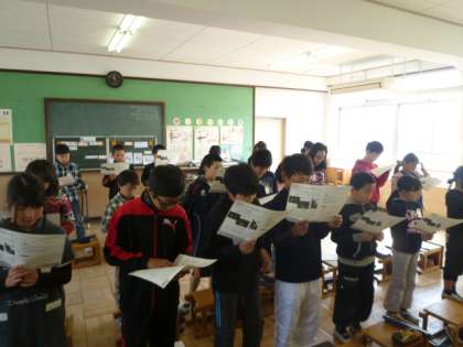 音楽では、卒業式の歌の練習と同時進行し、「君をのせて」の合唱にチャレンジしています。