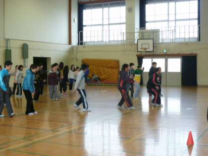 中間休みに、1組と2組前半VS2組後半と3組で、ドッジビー大会をしました。