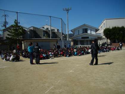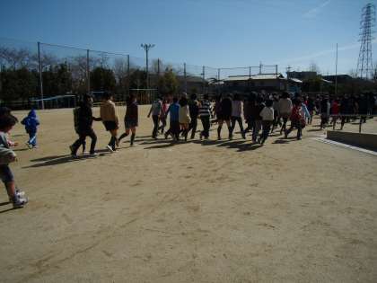 中間休みの出来事で,学級で二次避難する事が出来ない状態でしたが,運動場に着くとクラスごとに並び,スムーズに人員点呼できました。