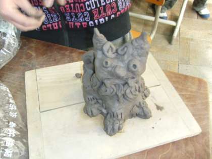 粘土でシーサーを