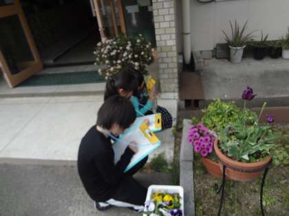 今日は,生活の学習で春見つけをしました。ポカポカ温かい日差しの中で,チューリップやタンポポ,あり,青虫など色々な花や生き物を見つけていました。よく見て絵を描いたり,様子を文で書いたりしていました。