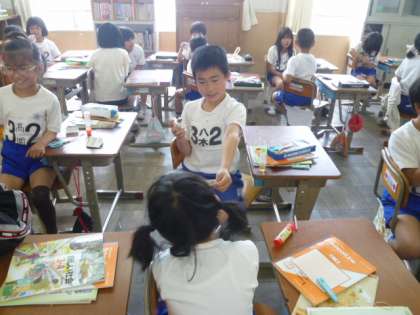 出来上がったら、となりの友達をペアになって、クイズを出し合いました。