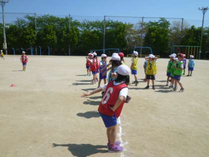 最初はバトンを右手から左手に持ちかえて走ることに苦戦していましたが、回数を重ねるごとに持ちかえて走る子が増えてきました。