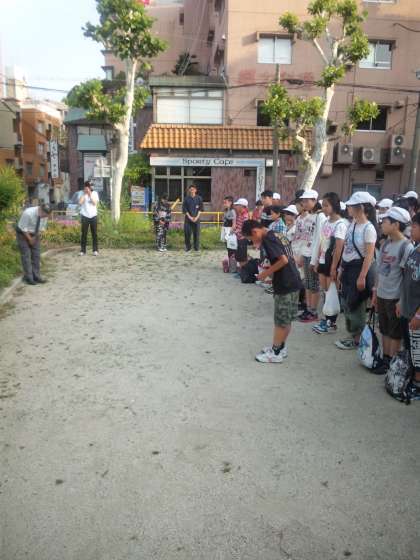 宿に到着しました。挨拶をしているところです。予定より30分ほど早く進んでいますので,ゆっくりとお風呂に入り,夕食を食べます。小出先生のお話は,予定通り午後7時30分からです。
