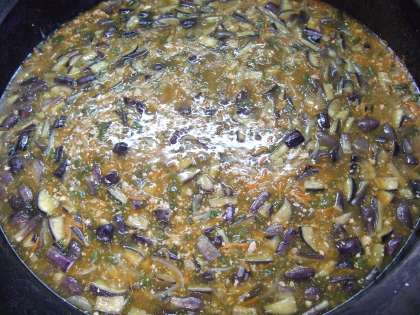 万願寺とうがらしとなすを油で揚げて、炒めた鶏ひき肉・たまねぎ・にんじんを、だし汁のあんでとじたものをごはんにかけて食べます。 食欲が減退しがちなこの時期ですが、しょうがの風味が食欲をそそって食べやすくなっています。