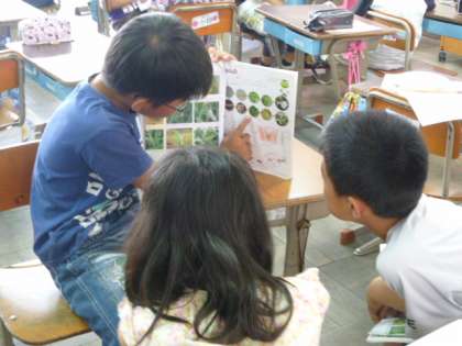 今日は、まとめとして、モンシロチョウとバッタの成長の様子をペアで説明しました。