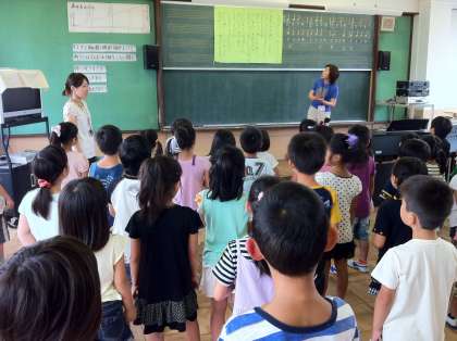 朝学習の時間にスクールサポーターの先生と一緒に校歌の練習をしました。