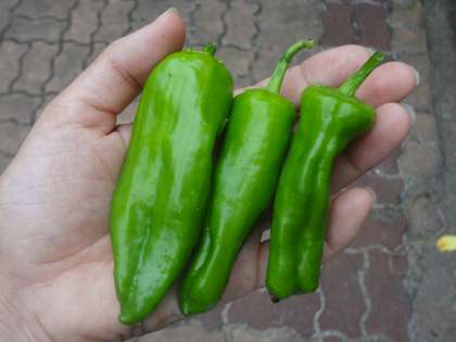 今日は,なすにししとう,ピーマンを収穫しました。今日の水やり当番の子どもたちに持って帰ってもらいました。おうちで料理に加えてあげてください。