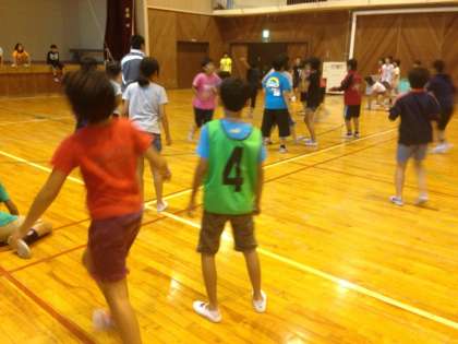 王様(ビブス)をねらうドッジボールを楽しんでいます。