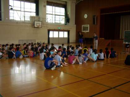 9:30〜受付が始まりました。70名ほどの子どもが参加します。南支部長に引き続き,嶋田校長の挨拶,谷口副支部長の説明を聞きました。