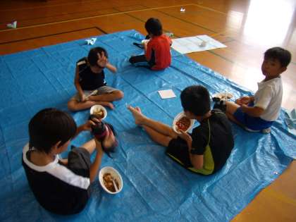 昼食は,飯ごうでご飯を炊き,カレーライスを食べました。