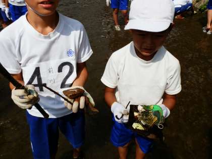 この前より大きなごみは減っていましたが,缶や陶器やガラスなどのごみはまだたくさんあり,みんなでがんばって拾いました。