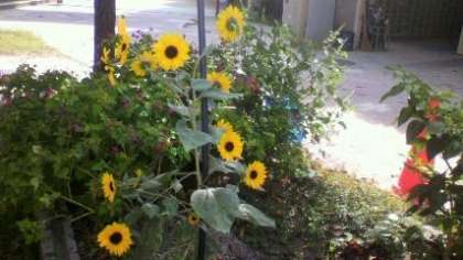 「遅咲き」なんていう品種があるのではないのです。夏休み、何度も枯れかけてなんとか生き残ったうちの一つがやっと花をつけただけのことです。