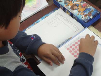 算数の時間は,6のだんの九九をつくりました。アレイ図を使って,かける数を増やしながら答えを見つけていきます。