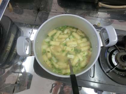 煮干でとったダシを味見して、ほんのりする味に「おいしい。」