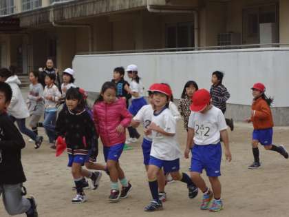 持久走大会に向けて,今中間マラソンをがんばっています。5分間,同じペースで走り続けます。去年よりもよい記録が出るようにがんばります!