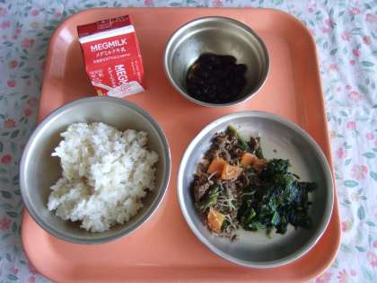 玄米ごはん 牛乳 牛肉のしぐれ煮 ほうれん草のおかか煮 黒豆