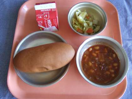 ミルクコッペパン 牛乳 大豆と牛肉のトマト煮 野菜のホットマリネ