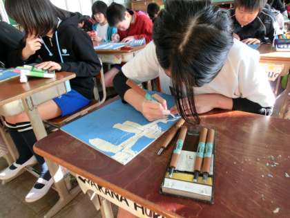 顔や体の丸みやしわなどを観察しながら、線の流れに気をつけて