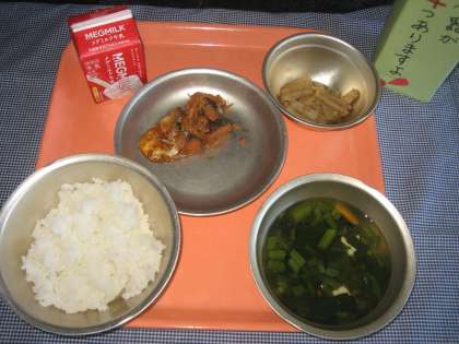 ごはん・牛乳・さばのかわり煮・たたきごぼう・すまし汁