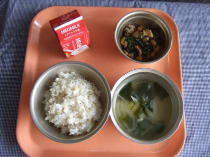 麦ごはん 牛乳 肉みそいため わかめスープ