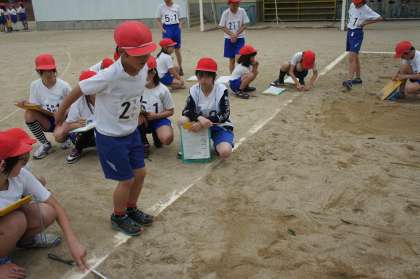 5年生と一緒に体力テストをしました。