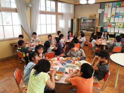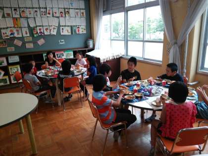 いつもの教室からはなれての食事は、会話も食欲もはずみます。