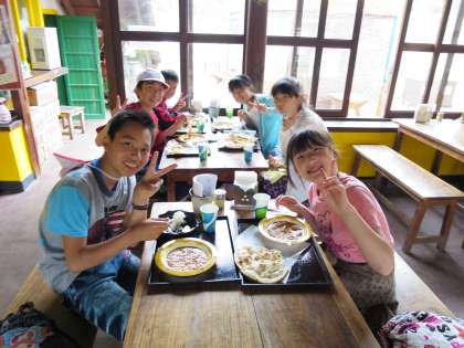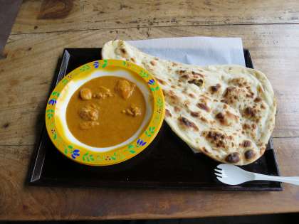 リトルワールドのインド料理店で食べた,ナンカレーです。一緒にいた子どもたちも