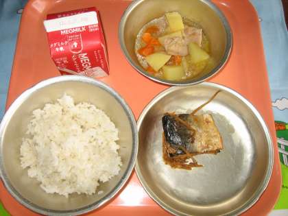 麦ごはん・牛乳・さばのしょうが煮・鶏肉と野菜の煮つけ