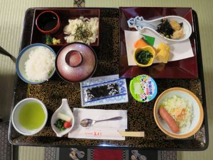 朝食には,「きしめん」(写真左上)が出ました。