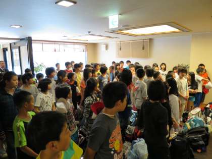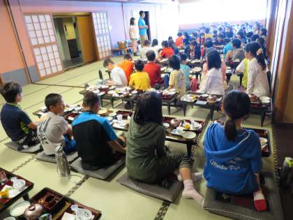 朝食の様子と,宿舎を出発する直前の様子です。