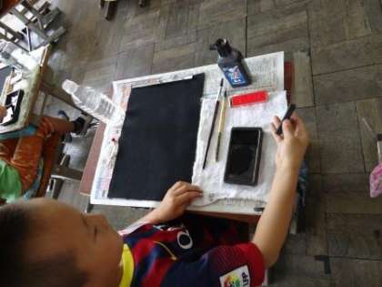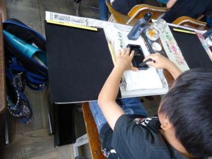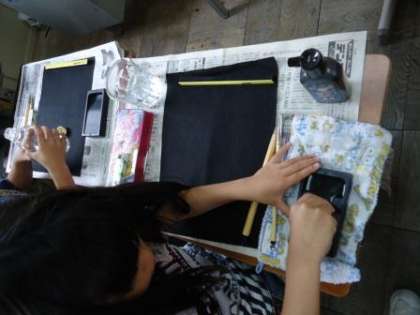子どもたちは,心を落ち着かせながら,ゆっくり墨を磨り,