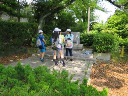 今日は,2日目の午前中に行った,東山動植物園の様子です。子どもたちの後ろには,動物の慰霊碑があります。