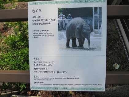 写真の小さな象は,この動物園で産まれたさくらちゃん,2歳です。体は小さいですが,体重は130kgあるそうです。