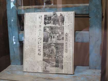 この写真は,戦争中に園長が守り抜いた象(マカニーとエルド)が,芸をするときに使っていた道具です。