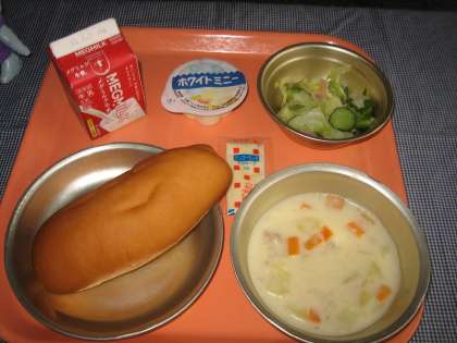コッペパン・牛乳・ハムサンド(具)・クリームシチュー・マヨネーズ・ミルクゼリー