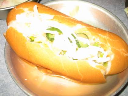 食べる時、自分でマヨネーズをかけ、スプーンを使ってパンを開き具を挟んでいただきました。