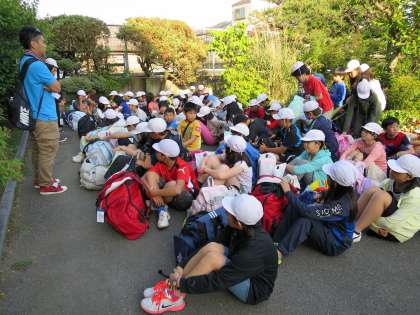 学校へ戻り,解散式をやっているところです。