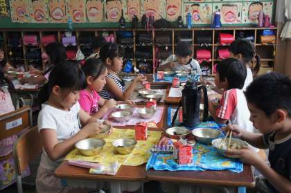 たくさん動いた後の給食はおいしいね!