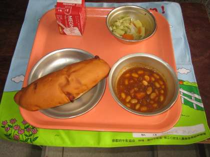 チーズコッペパン・牛乳・チリコンカーン・野菜のホットマリネ